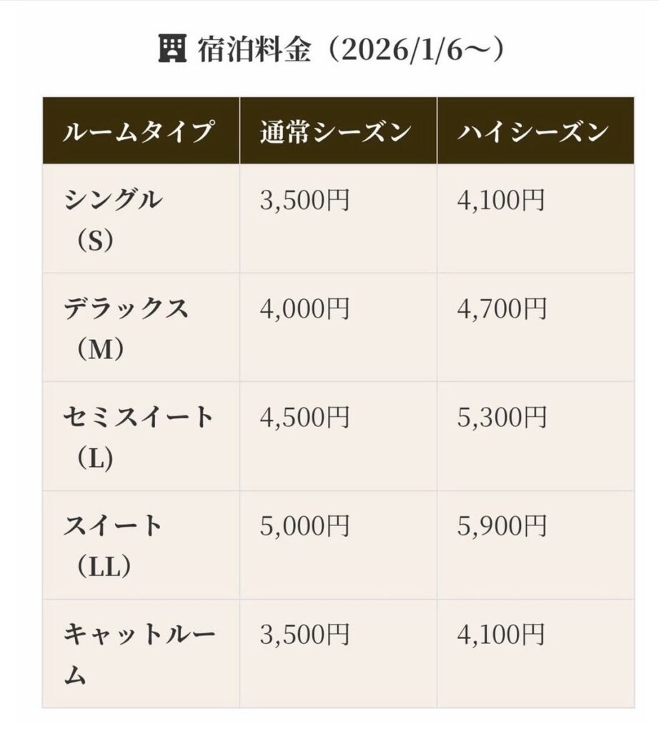 このたび、2026年1月6日よりペットホテルの料金を改定させていただくことになりました。